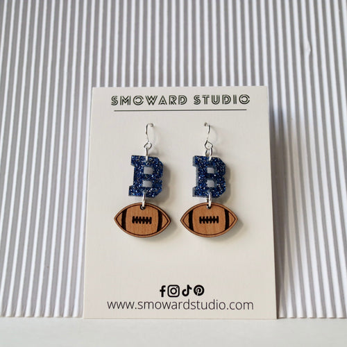 Blue giltter heart with Football