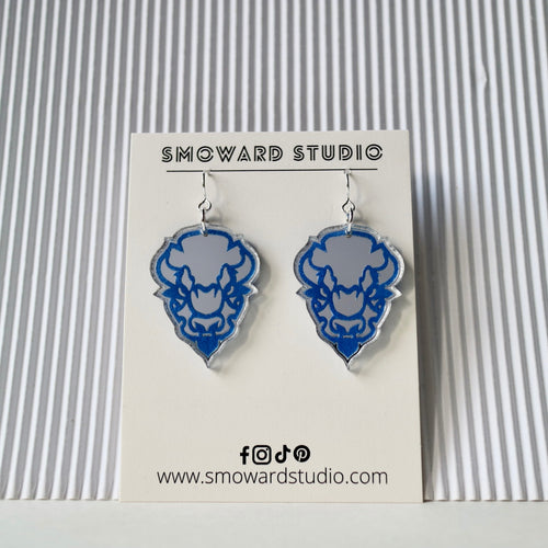 Silver mirror with blue bison Head
